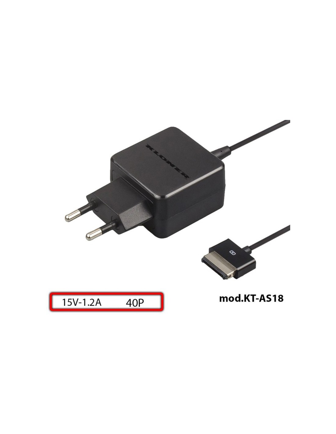 CARGADOR 15V ENCHUFE KLONER ASUS KT-AS18 PARA TABLET PN: KT-AS18 EAN: 8435352402899