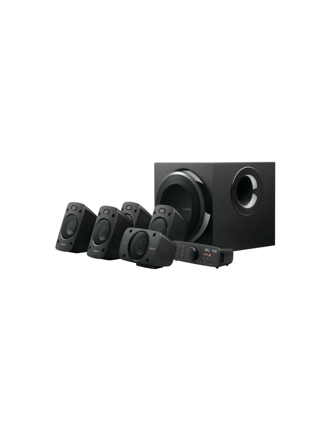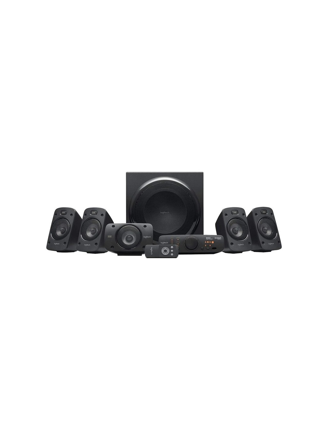 Vive la experiencia home cinema con los Logitech Z906, un equipo de sonido 5.1 potente y nítido que trasladan tu sofá a una sala de cine cada vez que los enciendes. Con sus 6 conexiones, podrás conectarlo a todo: TV, Consola, PC, reproductor MP4… Un sonido estéreo 3D enérgico y nítido con unos altavoces de 500 vatios y certificación THX. El sufbwoofer dispone de puerto de graves. Las películas y juegos alcanzan otro nivel con unos graves sustentados por 165 vatios de potencia. Disfruta de los Z906 cómodamente desde el sofá y configúralos uno a uno con su mando a distancia y consola. Instálalos y haz que cada noche sea de estreno. ¡Qué tiemblen las paredes con este equipo de sonido!