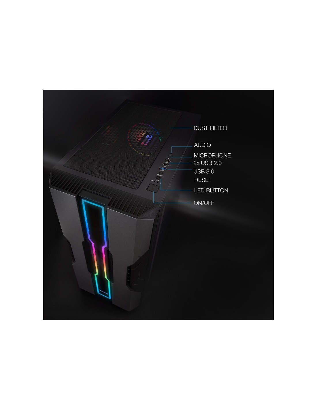 - Panel frontal con LED ARGB
