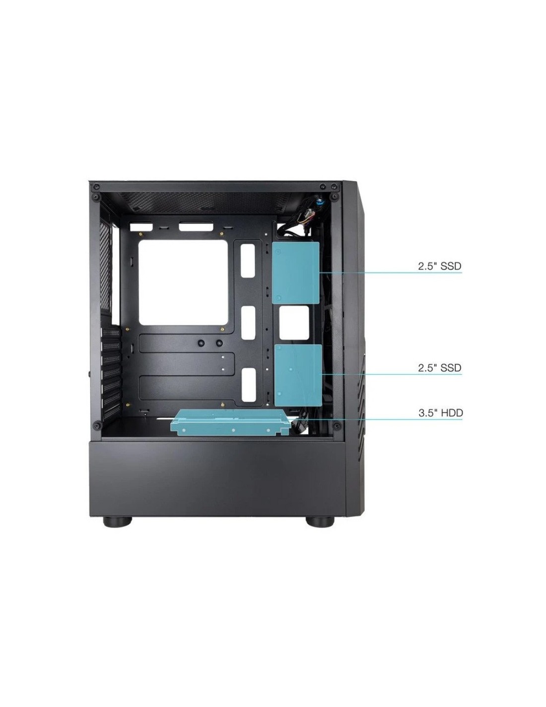- Bahías internas: 2 x 3.5” + 3 x 2.5”