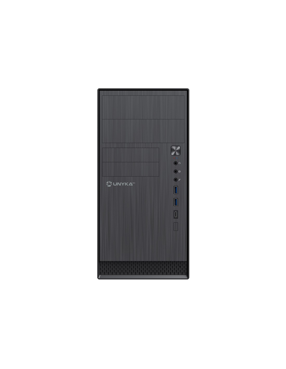 Si estás buscando una caja Micro ATX con un diseño discreto y de corte clásico, la AERO C12 V2 de UNYKAch es la opción perfecta para ti. Esta caja cuenta con un frontal elegante con efecto de aluminio cepillado. Además, la AERO C12 V2 incluye conexiones para dos puertos USB 3.0 y un puerto USB Type C 2.0, lo que permite una fácil conexión de periféricos y dispositivos externos de alta velocidad. También cuenta con conexiones para HD Audio y micrófono para una experiencia de audio de alta calidad.