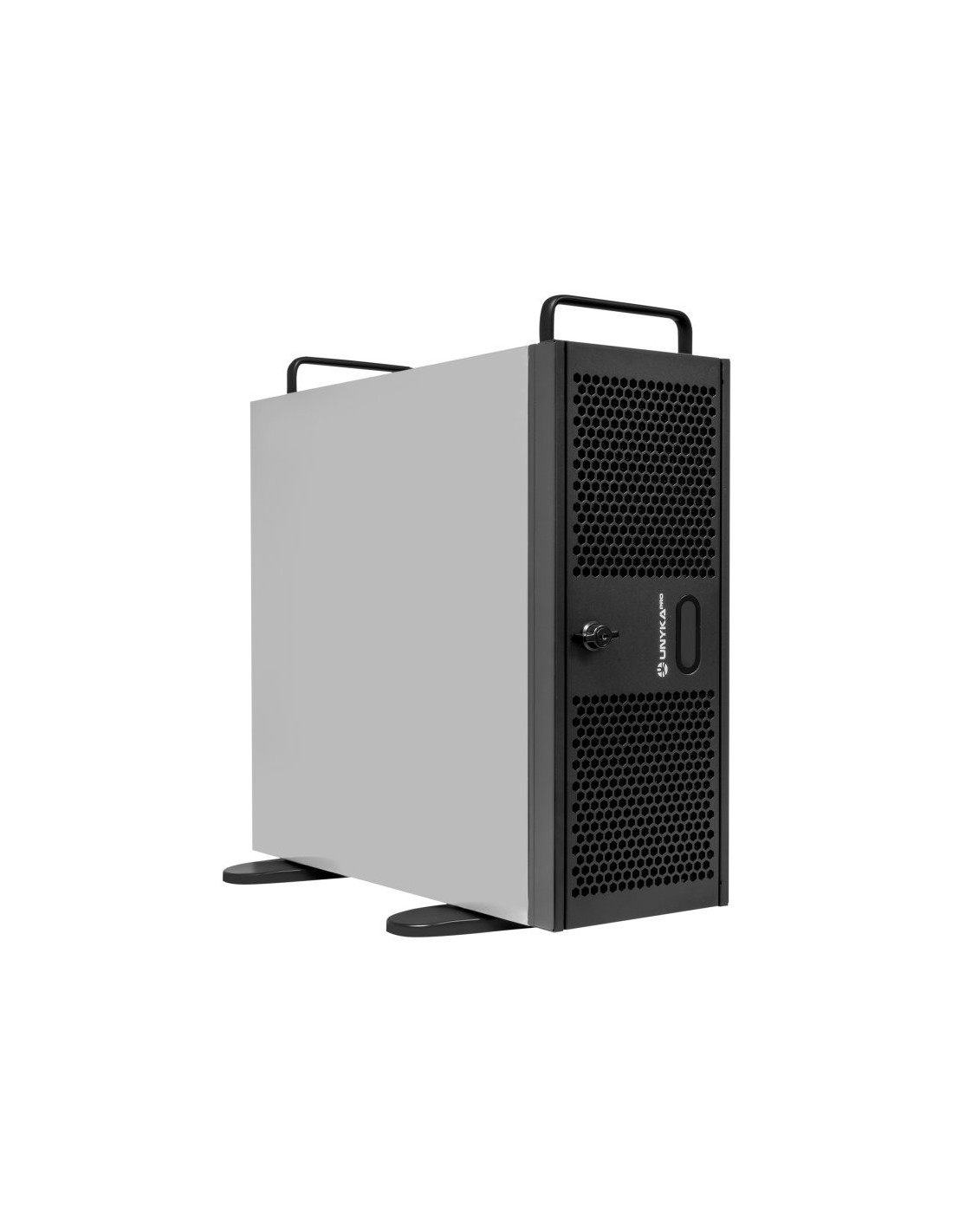 Presentamos la Caja Rack 4U 19" UK4339V de UNYKA PRO. Un chasis profesional para el montaje de CPUs en armarios rack de 19". Una carcasa especialmente diseñada para la instalación de equipos informáticos de uso intensivo como servidores, PC industriales, sistemas de almacenamiento, Data Center, laboratorios, ingeniería, pequeños negocios, Pymes, etc. Dispone de un amplio espacio interno compatible con sistemas de refrigeración líquida de 360 mm (se incluye el soporte), que facilita la circulación del aire por el interior de la caja. Además, incluye cuatro patas para poder colocarlo en posición vertical. Está fabricada en acero de alta resistencia e incorpora un cierre con llave, en su puerta frontal, para mayor seguridad.