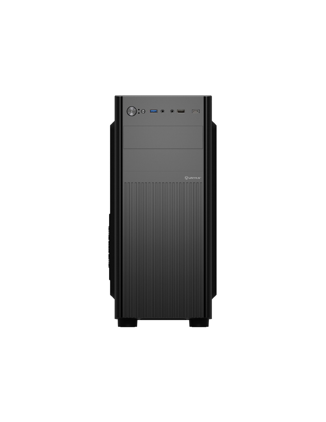 Diseñado para entornos profesionales y personales, el chasis ATX UK8026 (Modelo UK180260) de UNYKAch combina una estética sofisticada, robusta y atemporal. Con soporte para placas base ATX, Micro ATX e ITX, es la base perfecta para cualquier configuración. Ofrece una conectividad avanzada con puertos USB 2.0, USB 3.0 y USB Tipo C, junto con audio HD. Su capacidad para hasta 5 unidades de almacenamiento (HDD/SSD) y una gestión térmica superior con espacio para hasta 4 ventiladores, garantizan un rendimiento óptimo y un flujo de trabajo ininterrumpido.
