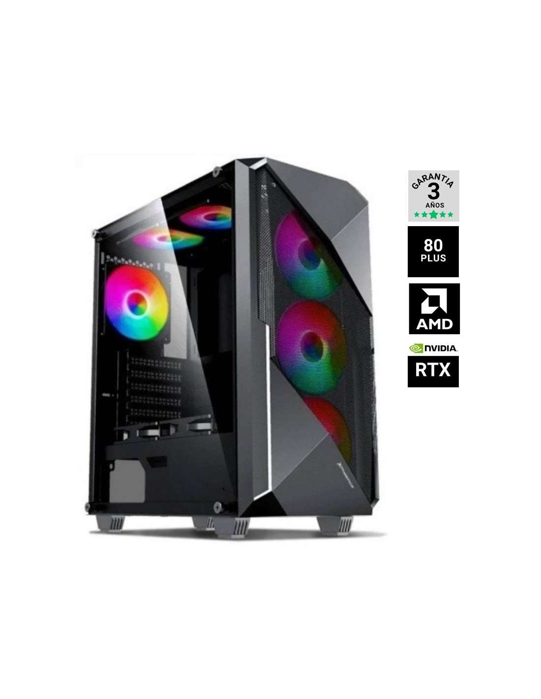 - Extras: x4 ventiladores ARGB, Ventilador Gaming SNOW IV Negro