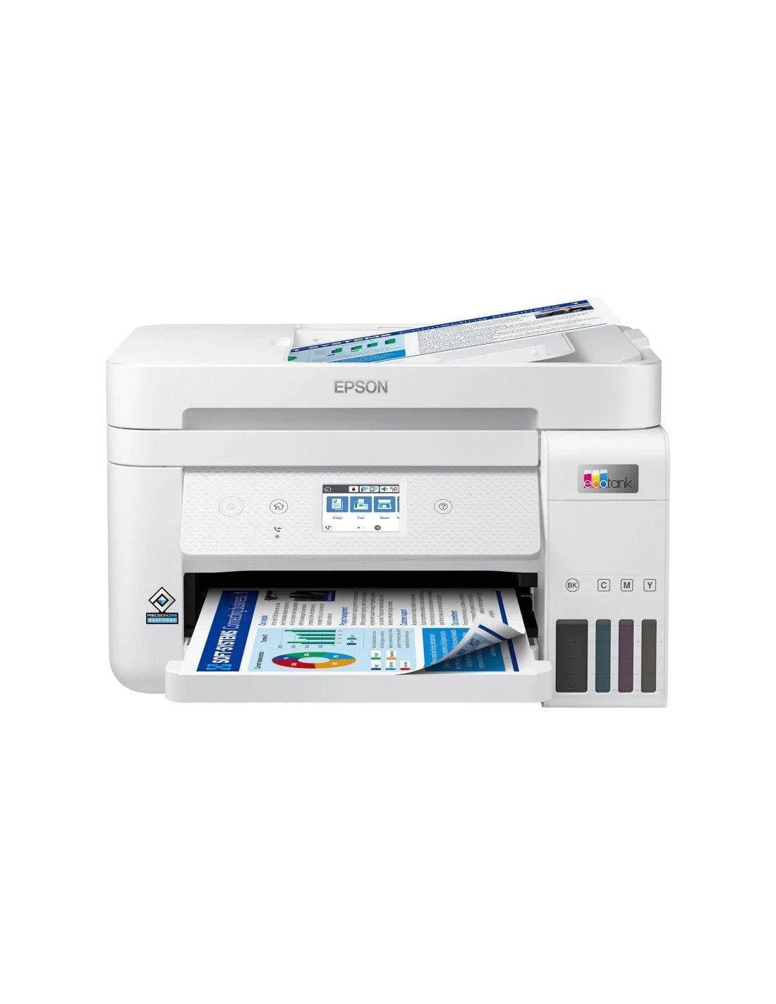 Disfruta de una impresión de alta velocidad y calidad profesional a coste ultrabajo con la impresora de inyección de tinta multifunción con fax y ADF Epson EcoTank ET-4856, perfecta para oficinas domésticas. Ahorra hasta un 90 % en costes de impresión con las impresoras EcoTank sin cartuchos de Epson. Los depósitos de tinta se suministran con botellas de tinta de alto rendimiento que permiten rellenarlos de forma sencilla y limpia, y evitan la necesidad de reemplazar cartuchos.