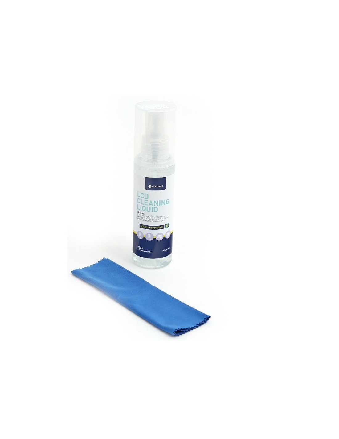 Kit de limpieza (limpiador 125ml + microfibra 15x18cm) especial para limpiar plasmas, monitores, LCD, tablets, smartphones, portátiles y todo tipo de superficies de cristal.