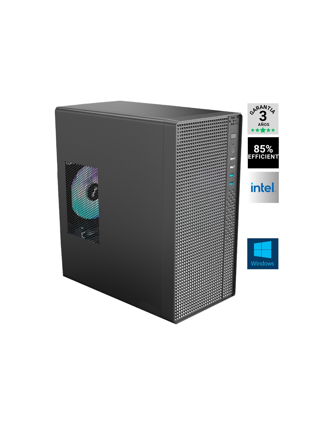 Procesador: Intel Core S-1851 ULTRA 7 265 2.4GHZ, Memoria: 16GB DDR5 5600MHZ, Disco duro: SSD M.2 1TB NVME, Fuente 300W 85%, Incluye 1 ventilador, Windows 11 Pro , Caja Micro ATX APPROX APPC-901 Negra. PRODUCTO SUJETO A CANON DE 5,33€ QUE SE APLICARA EN FACTURA.