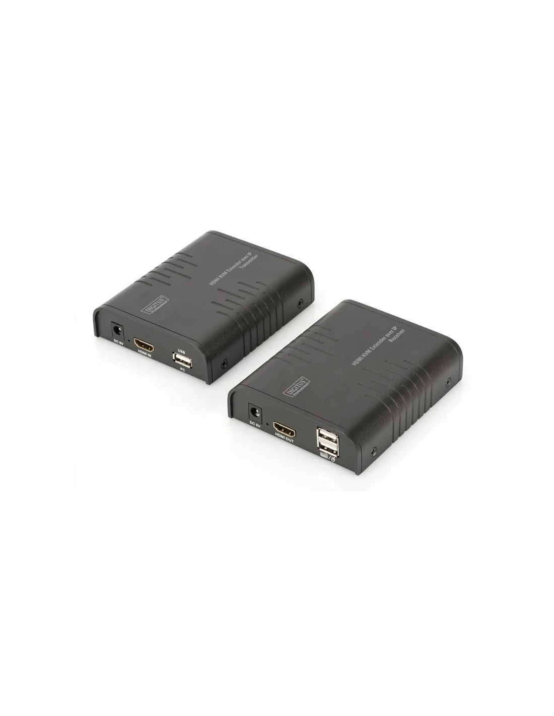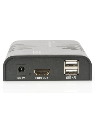 El set extensor HDMI KVM Digitus consta de una unidad de transmisión (ubicación local) y una unidad de recepción (ubicación remota). La señal HDMI se pueden extender mediante un cable de red (CAT 6, 5e, 5) a una distancia máxima de 120 m. Del mismo modo, la señal HDMI se puede extender a una distancia ilimitada a través de la infraestructura de red existente (a través de conexión IP). La mayor resolución de vídeo compatible es de 1080p/60 Hz. También permite acceder cómodamente a un ordenador (ratón y teclado) mediante los puertos USB de la unidad receptora. Es ideal para aplicaciones industriales, comerciales y públicas.