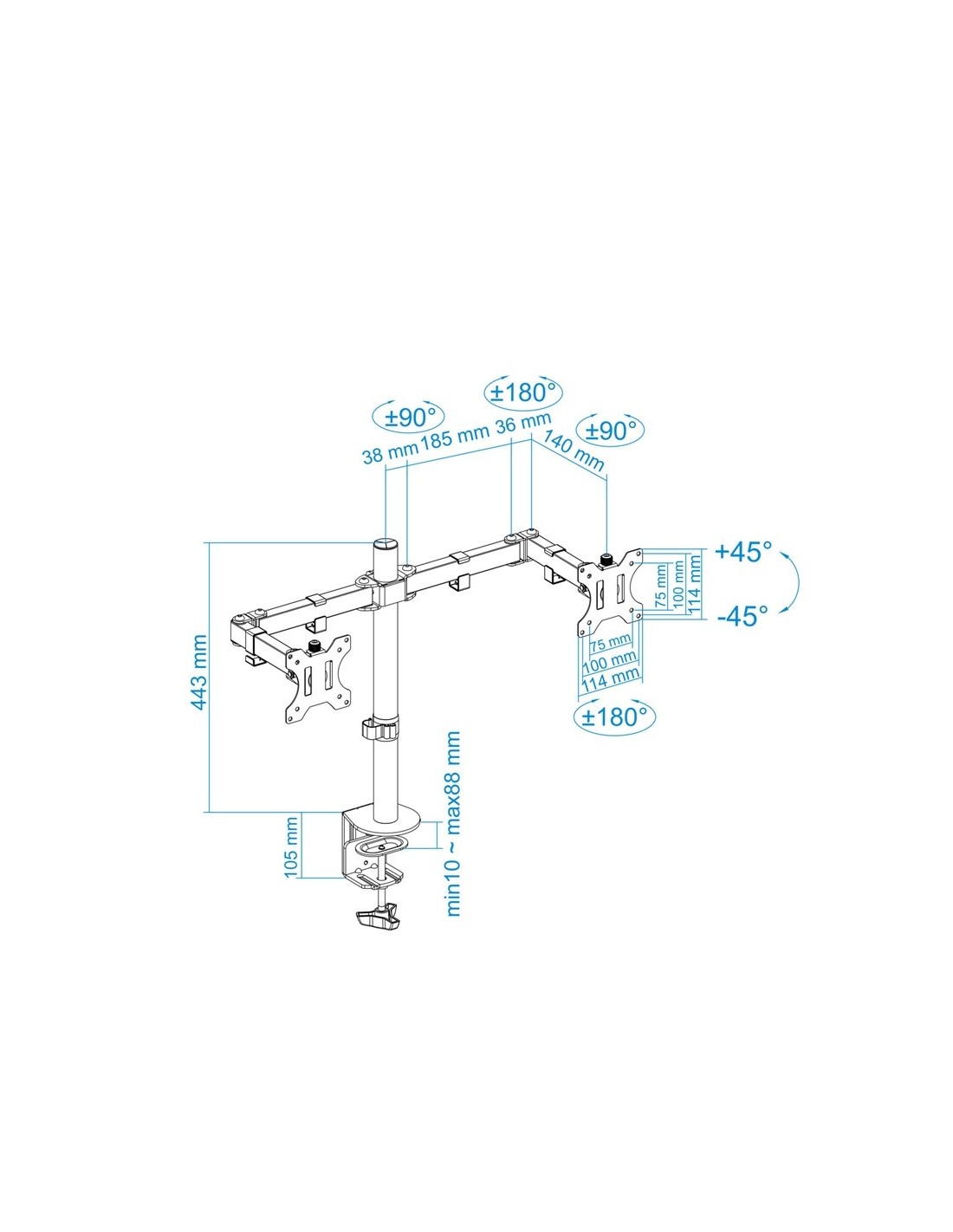 - Ángulo de rotación: +180°/-180°