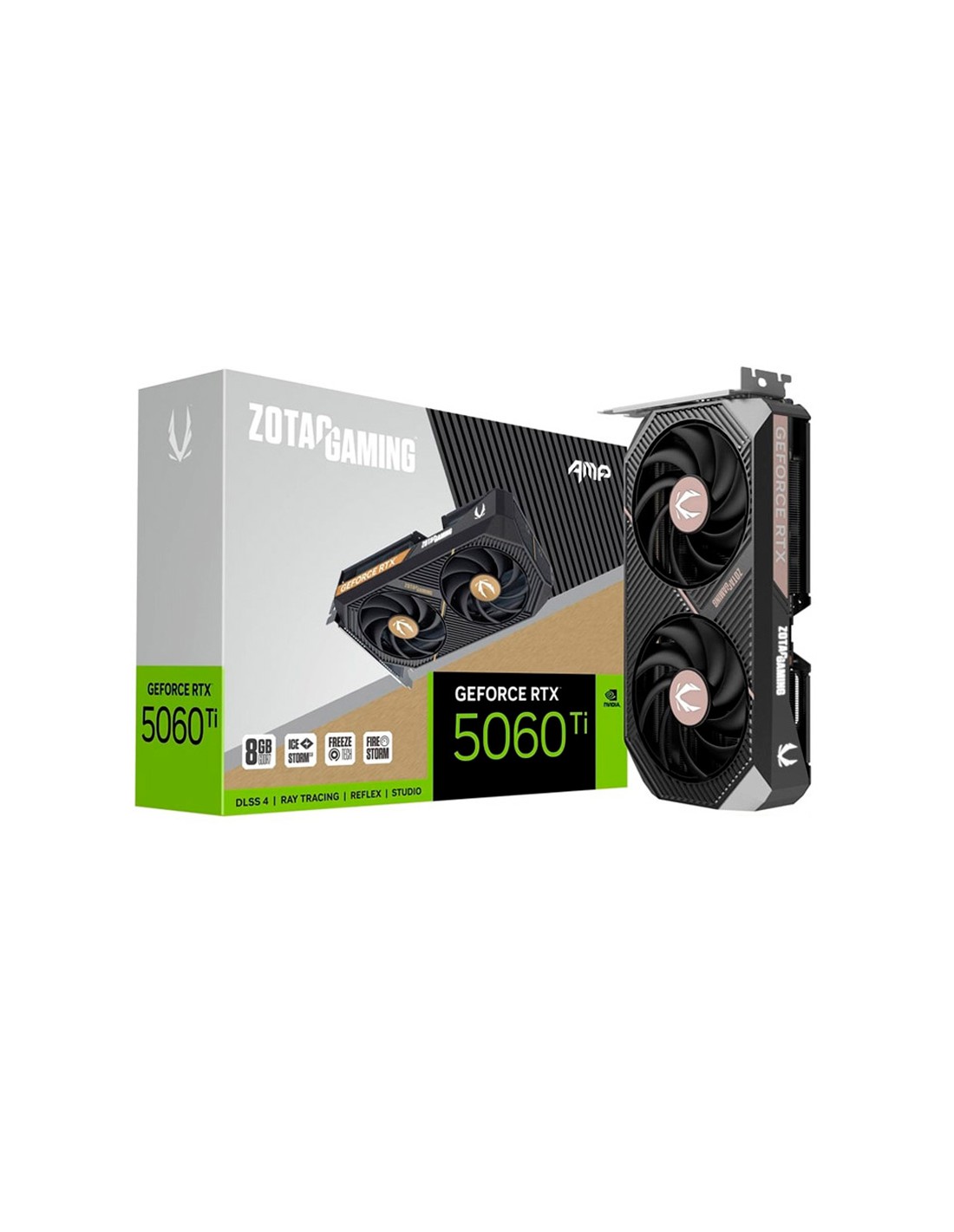 La tarjeta gráfica ZOTAC GAMING GeForce RTX 5060 Ti 8GB AMP es una tarjeta compacta impulsada por la avanzada arquitectura Blackwell de NVIDIA, DLSS4 y 8GB de memoria GDDR7. Con un potente overclocking de fábrica y una sólida solución de refrigeración, el modelo AMP está listo para enfrentar los lanzamientos de los títulos más recientes con tasas de cuadros y rendimiento fluidos.