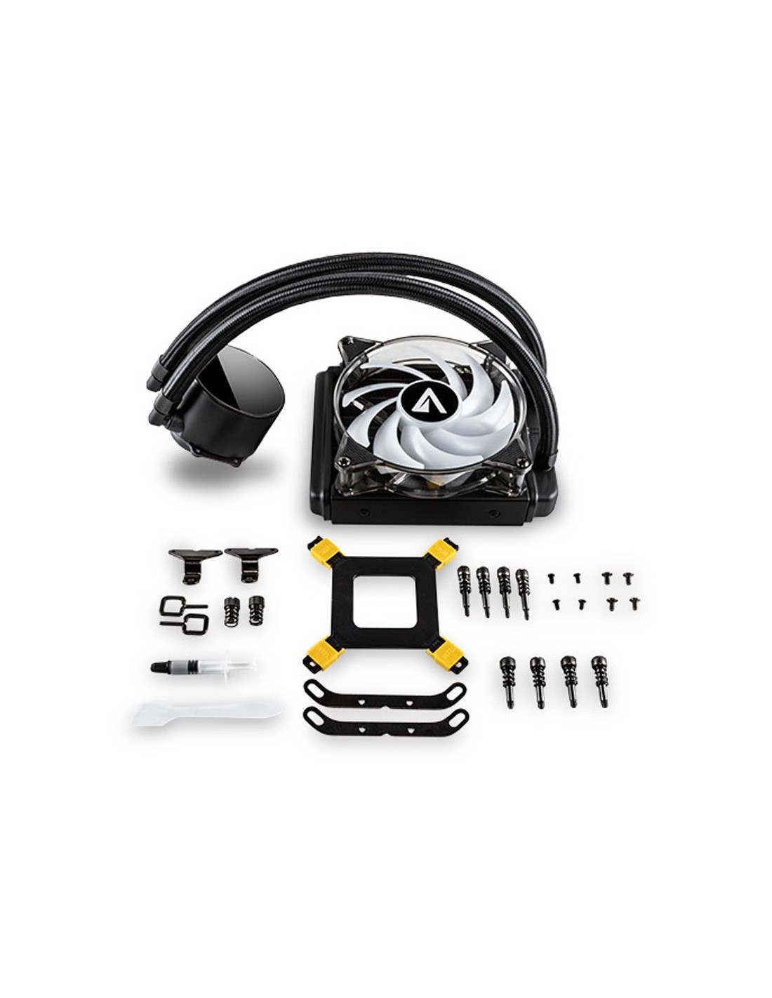 KTI REFRIGERANCION LIQUIDA ARTIC 120 ARGB. Artic 120 ARGB de ABYSM es un sistema de refrigeración líquida equipado con un ventilador de 120 mm. Es el sistema de refrigeración perfecto para aquellos equipos que soportan altas temperaturas. Su calidad está a la altura de los gamers más exigentes que podrán disfrutar de largas sesiones de juego sin preocuparse por el sobrecalentamiento de su CPU. ockets de procesador soportados